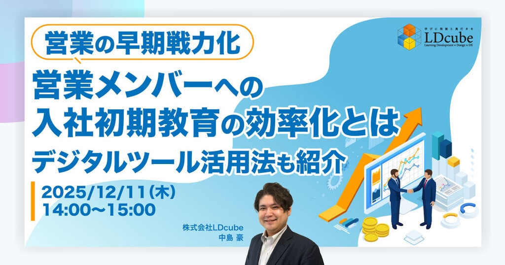 12/11開催|【営業の早期戦力化】営業メンバーへの入社初期教育の効率化とは~デジタルツール活用法も紹介~無料ウェビナー