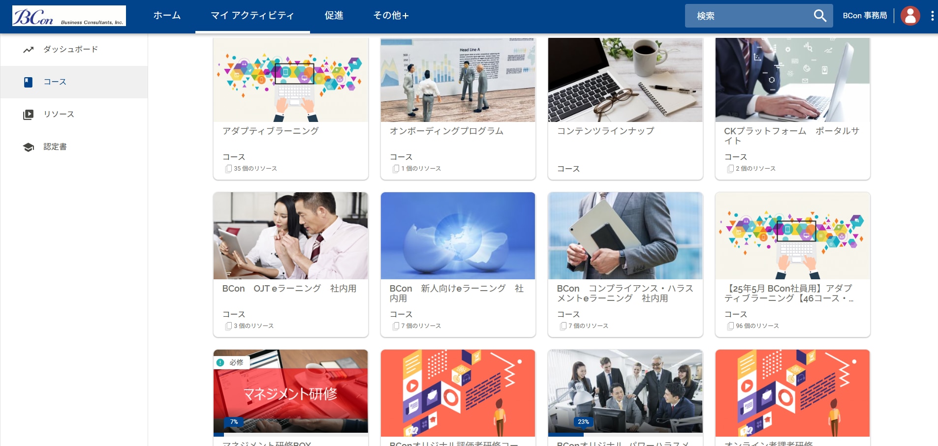 コンテンツは、新入社員向け・中堅社員向け・管理職向け・経営層向けといった階層別にコースをパッケージ化し、それぞれをSCORM教材として提供しています。すでにLMSを導入されているお客さまには、必要なSCORM教材のみを提供し、既存環境にそのまま組み込んでご利用いただくことが可能です。