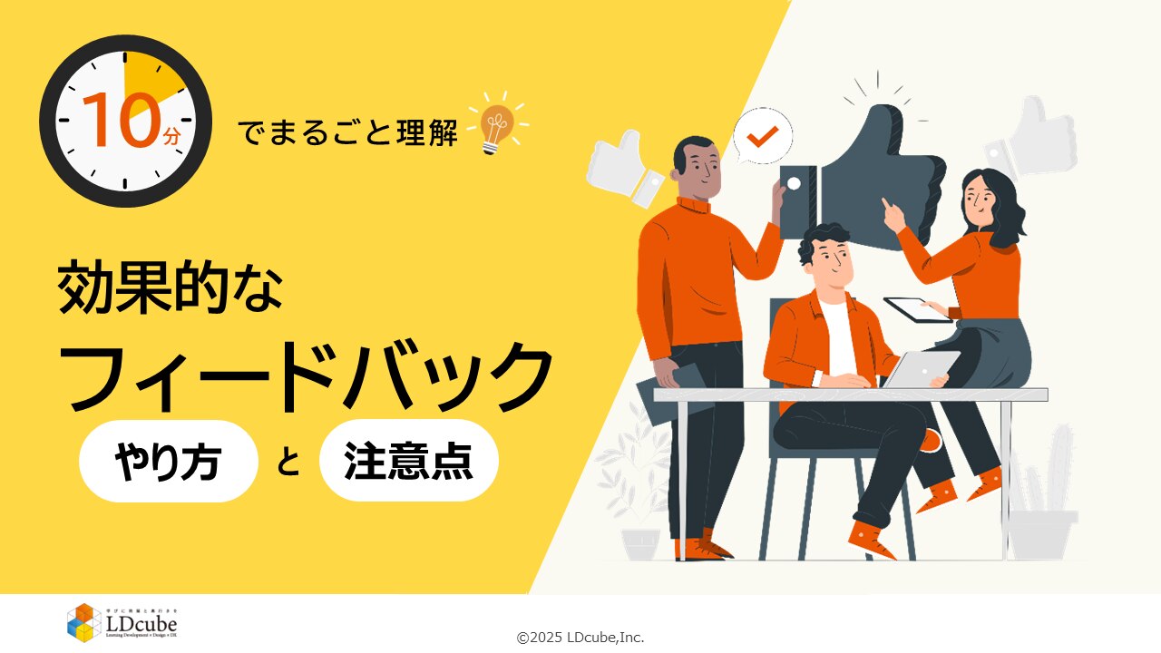 研修のスタイルにとらわれない企業向け人材育成サービスを提供する株式会社LDcube(本社:東京都千代田区、代表取締役社長:新井澄人、以下「当社」)は、「10分でまるごと理解!効果的なフィードバックのやり方と注意点」を無料公開しましたので、お知らせします。