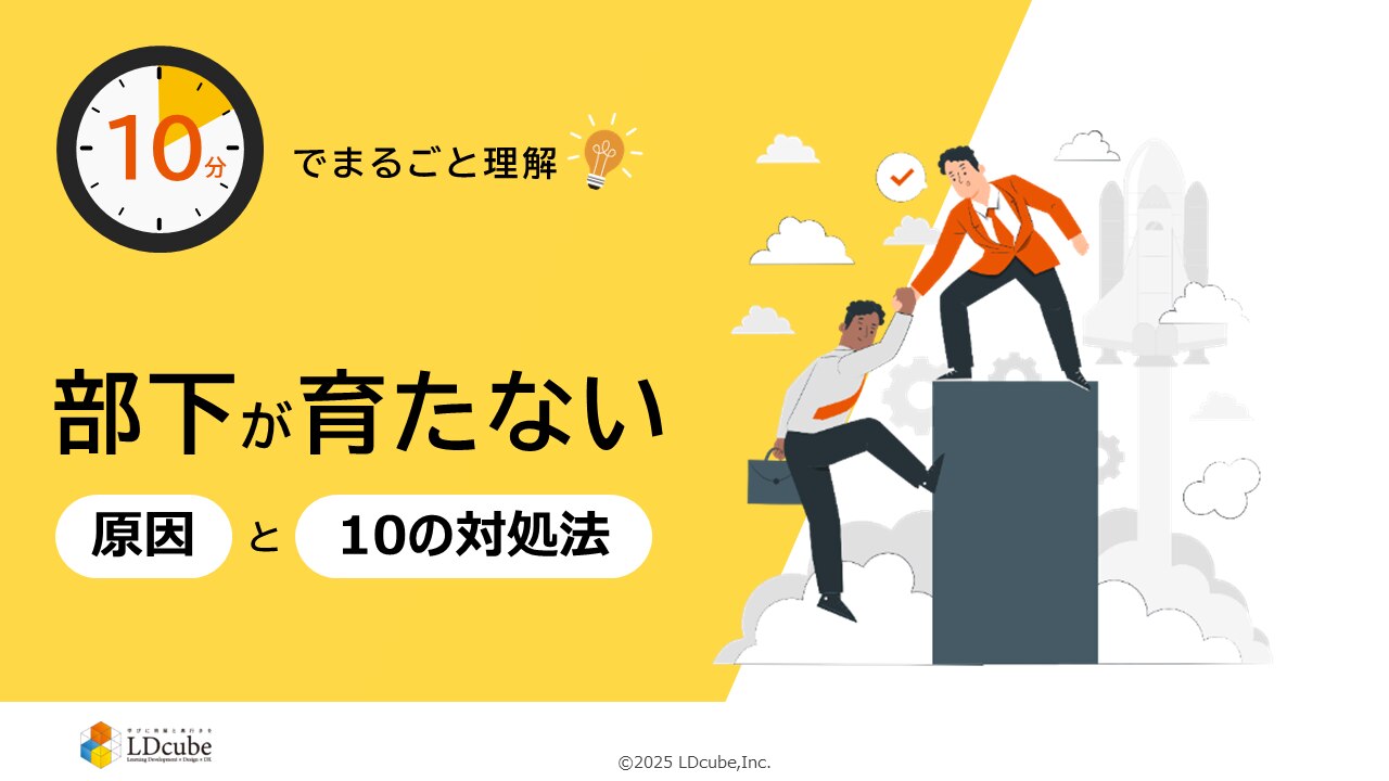 研修のスタイルにとらわれない企業向け人材育成サービスを提供する株式会社LDcube(本社:東京都千代田区、代表取締役社長:新井澄人、以下「当社」)は、「10分でまるごと理解!部下が育たない原因と10の対処法」を無料公開しましたので、お知らせします。