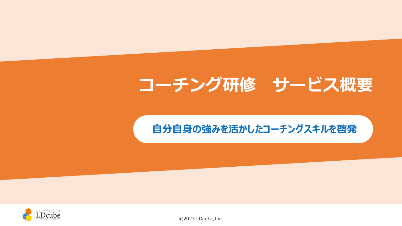 研修のスタイルにとらわれない企業向け人材育成サービスを提供する株式会社LDcube(本社:東京都千代田区、代表取締役社長:新井澄人、以下「当社」)は、「コーチング研修サービス資料」を無料公開しましたので、お知らせします。
