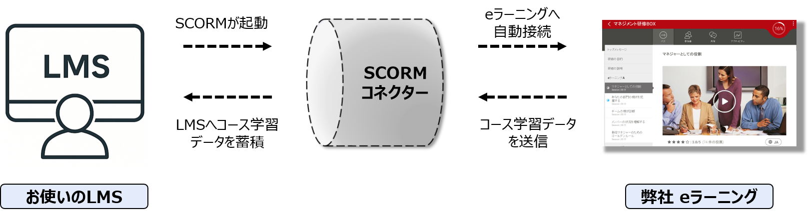このようなニーズも、各社のLMS・コンテンツがSCORMに対応していることにより、学習の選択肢の幅が広がります。