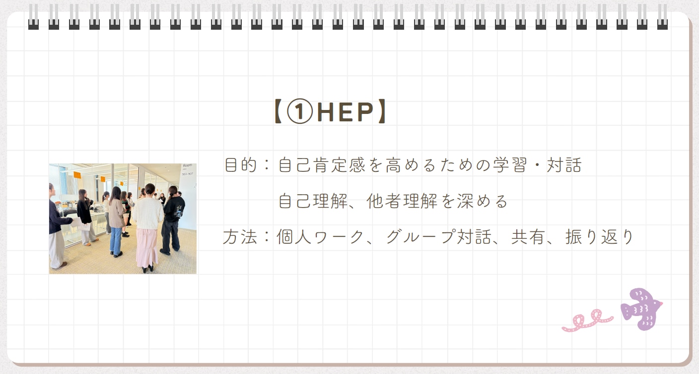 「HEP」と「ジャーナル」のそれぞれについて、以下の通り取り組み、学びを得ました。